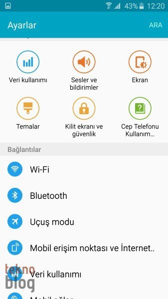 S6’nın 5.1 inç ekranı 2560 x 1440 piksel çözünürlük desteği sunuyor. Super AMOLED ekranın 577 ppi piksel yoğunluğuyla piyasadaki en keskin ekranlardan bir tanesi, belki de en keskini… Gözlerinizi ekrana iyice yaklaştırsanız bile pikselleri fark etmeniz imkansıza eşdeğer. Super AMOLED ekranların klasik özellikleri bu ekranda da mevcut; renkler canlı, parlaklık yüksek seviyede. Güneş ışığı altında da Quad HD ekran yeterli görüş sağlıyor; böylelikle Galaxy S6’yı dışarıda zahmetsizce kullanmanız mümkün oluyor. Bu arada Galaxy S6’nın ekranı güneş gözlüğüyle de sorun çıkarmıyor. Güneş gözlüğü takıyorsanız Galaxy S6’nın ekranını görmek için gözlüğü çıkarmanıza gerek yok. Görüş açıları da epey geniş; sağdan, soldan, yukarıdan veya aşağıdan bakıldığında ekrandaki renklerde ve parlaklıkta gözle görülür bir değişiklik olmuyor.